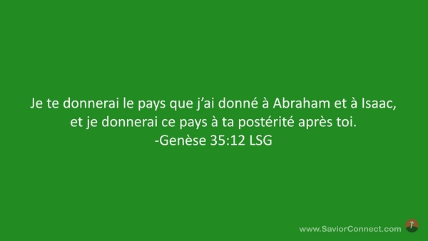 Je te donnerai le pays que j'ai donné à Abraham et à Isaac, et je donnerai ce pays à ta postérité après toi. -Genèse 35:12 LSG