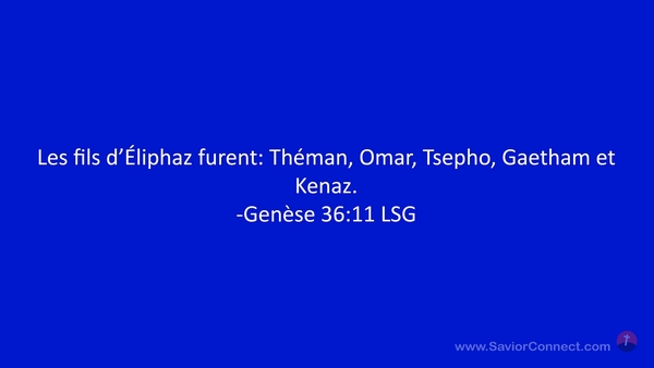 Les fils d'Éliphaz furent: Théman, Omar, Tsepho, Gaetham et Kenaz. -Genèse 36:11 LSG