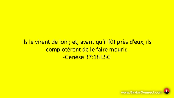 Ils le virent de loin; et, avant qu'il fût près d'eux, ils complotèrent de le faire mourir. -Genèse 37:18 LSG
