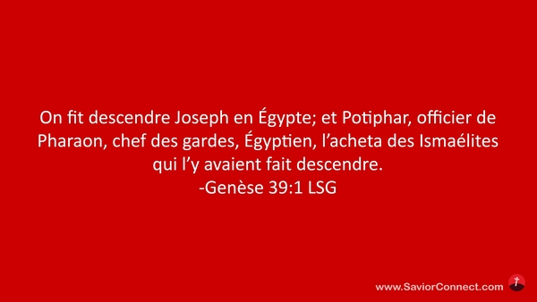 On fit descendre Joseph en Égypte; et Potiphar, officier de Pharaon, chef des gardes, Égyptien, l'acheta des Ismaélites qui l'y avaient fait descendre. -Genèse 39:1 LSG