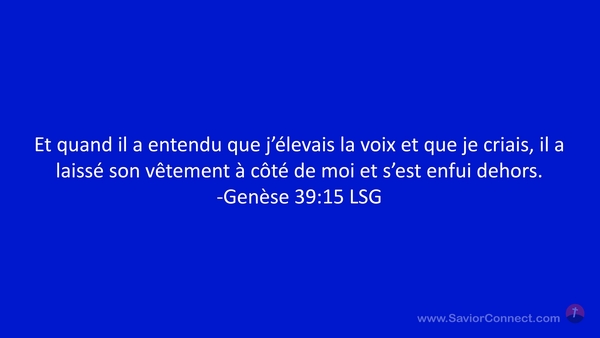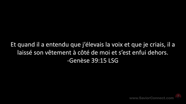 Et quand il a entendu que j'élevais la voix et que je criais, il a laissé son vêtement à côté de moi et s'est enfui dehors. -Genèse 39:15 LSG