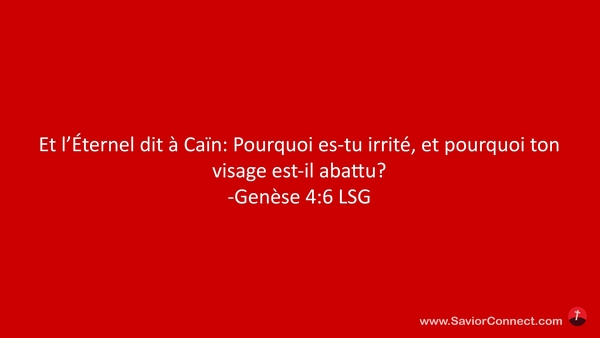 Et l'Éternel dit à Caïn: Pourquoi es-tu irrité, et pourquoi ton visage est-il abattu? -Genèse 4:6 LSG