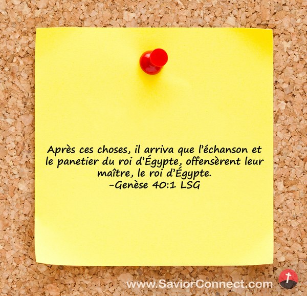 Après ces choses, il arriva que l'échanson et le panetier du roi d'Égypte, offensèrent leur maître, le roi d'Égypte. -Genèse 40:1 LSG