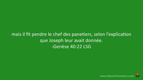 mais il fit pendre le chef des panetiers, selon l'explication que Joseph leur avait donnée. -Genèse 40:22 LSG