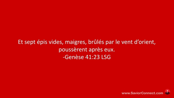 Et sept épis vides, maigres, brûlés par le vent d'orient, poussèrent après eux. -Genèse 41:23 LSG
