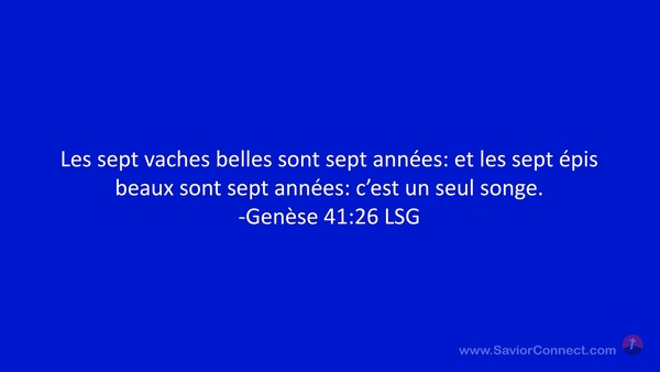 Les sept vaches belles sont sept années: et les sept épis beaux sont sept années: c'est un seul songe. -Genèse 41:26 LSG