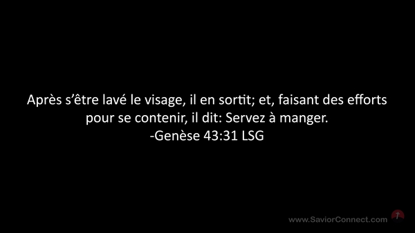 Après s'être lavé le visage, il en sortit; et, faisant des efforts pour se contenir, il dit: Servez à manger. -Genèse 43:31 LSG