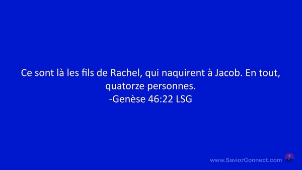 Ce sont là les fils de Rachel, qui naquirent à Jacob. En tout, quatorze personnes. -Genèse 46:22 LSG