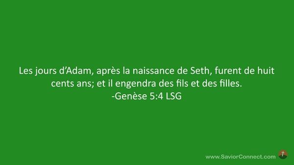 Les jours d'Adam, après la naissance de Seth, furent de huit cents ans; et il engendra des fils et des filles. -Genèse 5:4 LSG