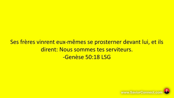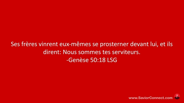 Ses frères vinrent eux-mêmes se prosterner devant lui, et ils dirent: Nous sommes tes serviteurs. -Genèse 50:18 LSG