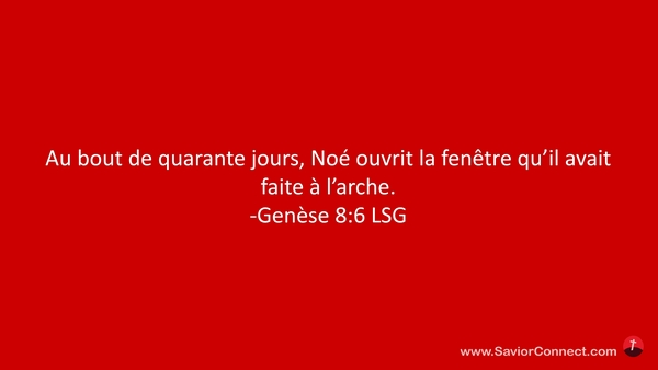 Au bout de quarante jours, Noé ouvrit la fenêtre qu'il avait faite à l'arche. -Genèse 8:6 LSG