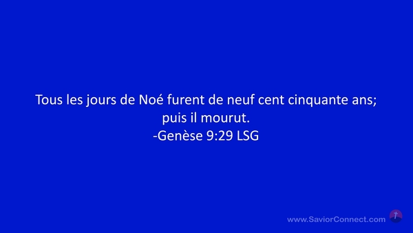 Tous les jours de Noé furent de neuf cent cinquante ans; puis il mourut. -Genèse 9:29 LSG