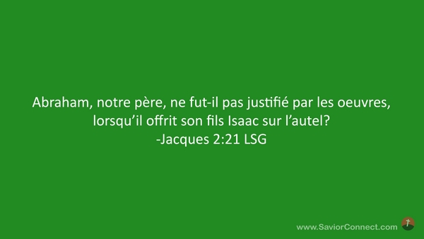 Abraham, notre père, ne fut-il pas justifié par les oeuvres, lorsqu'il offrit son fils Isaac sur l'autel? -Jacques 2:21 LSG