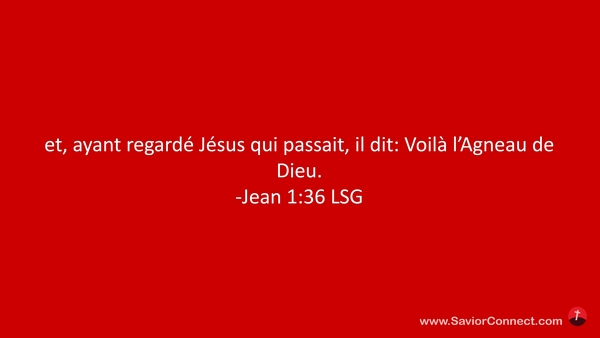 et, ayant regardé Jésus qui passait, il dit: Voilà l'Agneau de Dieu. -Jean 1:36 LSG