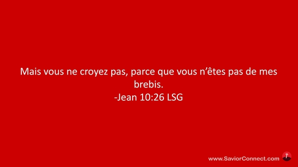 Mais vous ne croyez pas, parce que vous n'êtes pas de mes brebis. -Jean 10:26 LSG