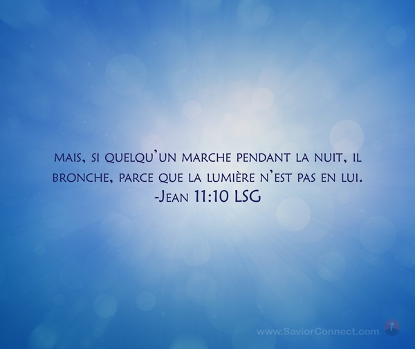 mais, si quelqu'un marche pendant la nuit, il bronche, parce que la lumière n'est pas en lui. -Jean 11:10 LSG