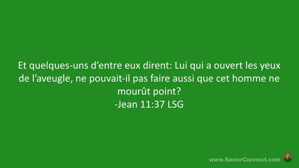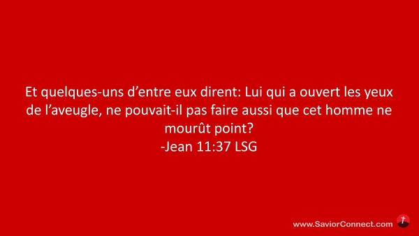 Et quelques-uns d'entre eux dirent: Lui qui a ouvert les yeux de l'aveugle, ne pouvait-il pas faire aussi que cet homme ne mourût point? -Jean 11:37 LSG