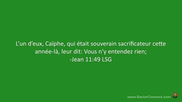 L'un d'eux, Caïphe, qui était souverain sacrificateur cette année-là, leur dit: Vous n'y entendez rien; -Jean 11:49 LSG