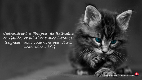 s'adressèrent à Philippe, de Bethsaïda en Galilée, et lui dirent avec instance: Seigneur, nous voudrions voir Jésus. -Jean 12:21 LSG