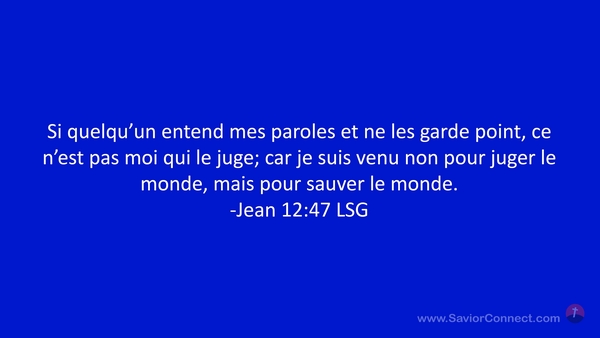 Si quelqu'un entend mes paroles et ne les garde point, ce n'est pas moi qui le juge; car je suis venu non pour juger le monde, mais pour sauver le monde. -Jean 12:47 LSG