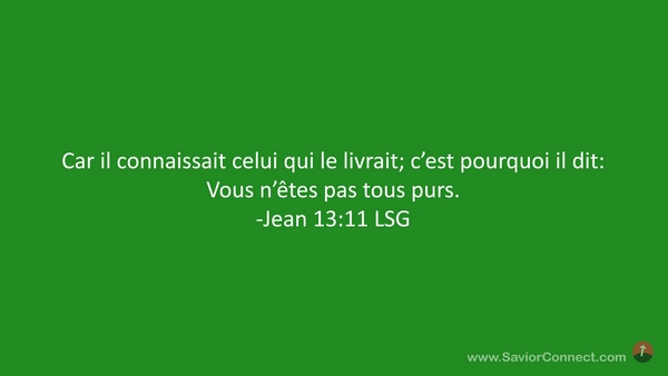 Car il connaissait celui qui le livrait; c'est pourquoi il dit: Vous n'êtes pas tous purs. -Jean 13:11 LSG