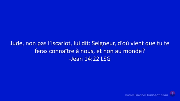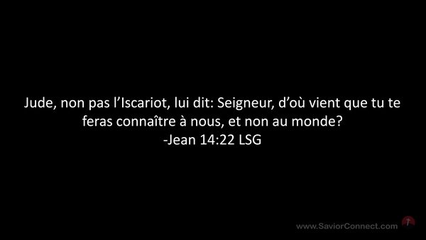 Jude, non pas l'Iscariot, lui dit: Seigneur, d'où vient que tu te feras connaître à nous, et non au monde? -Jean 14:22 LSG