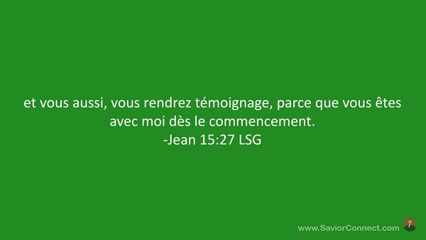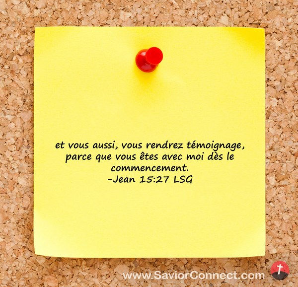 et vous aussi, vous rendrez témoignage, parce que vous êtes avec moi dès le commencement. -Jean 15:27 LSG