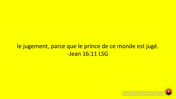 le jugement, parce que le prince de ce monde est jugé. -Jean 16:11 LSG