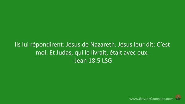 Ils lui répondirent: Jésus de Nazareth. Jésus leur dit: C'est moi. Et Judas, qui le livrait, était avec eux. -Jean 18:5 LSG