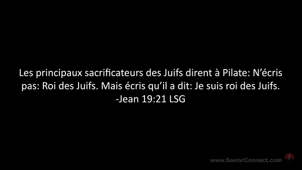 Les principaux sacrificateurs des Juifs dirent à Pilate: N'écris pas: Roi des Juifs. Mais écris qu'il a dit: Je suis roi des Juifs. -Jean 19:21 LSG