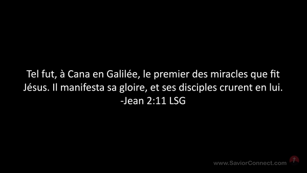 Tel fut, à Cana en Galilée, le premier des miracles que fit Jésus. Il manifesta sa gloire, et ses disciples crurent en lui. -Jean 2:11 LSG