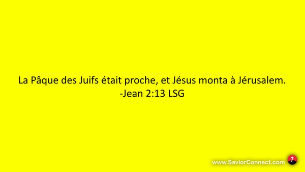 La Pâque des Juifs était proche, et Jésus monta à Jérusalem. -Jean 2:13 LSG