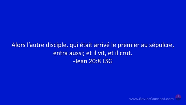 Alors l'autre disciple, qui était arrivé le premier au sépulcre, entra aussi; et il vit, et il crut. -Jean 20:8 LSG