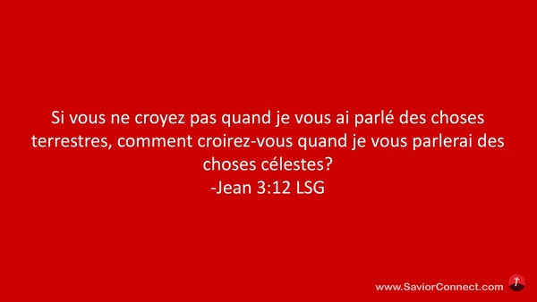 Si vous ne croyez pas quand je vous ai parlé des choses terrestres, comment croirez-vous quand je vous parlerai des choses célestes? -Jean 3:12 LSG