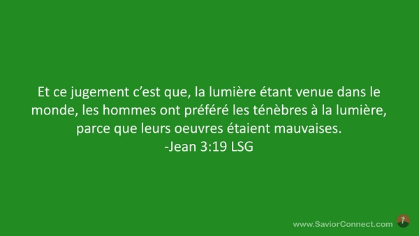 Et ce jugement c'est que, la lumière étant venue dans le monde, les hommes ont préféré les ténèbres à la lumière, parce que leurs oeuvres étaient mauvaises. -Jean 3:19 LSG