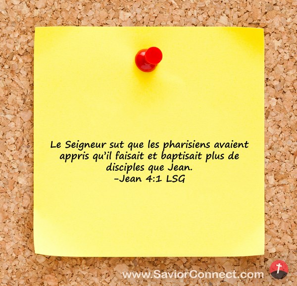 Le Seigneur sut que les pharisiens avaient appris qu'il faisait et baptisait plus de disciples que Jean. -Jean 4:1 LSG