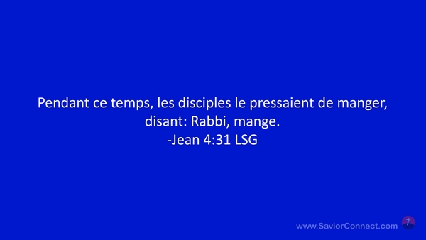 Pendant ce temps, les disciples le pressaient de manger, disant: Rabbi, mange. -Jean 4:31 LSG