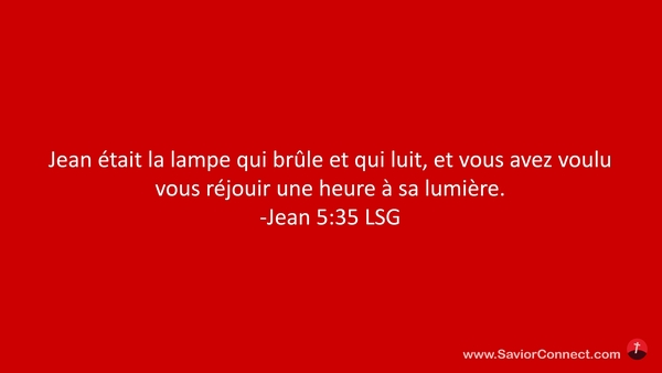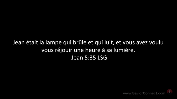 Jean était la lampe qui brûle et qui luit, et vous avez voulu vous réjouir une heure à sa lumière. -Jean 5:35 LSG