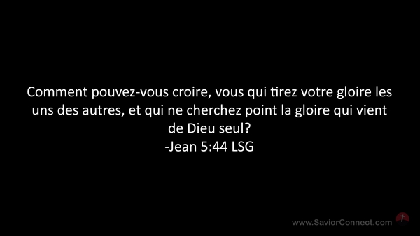 Comment pouvez-vous croire, vous qui tirez votre gloire les uns des autres, et qui ne cherchez point la gloire qui vient de Dieu seul? -Jean 5:44 LSG