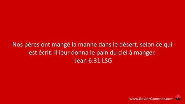 Nos pères ont mangé la manne dans le désert, selon ce qui est écrit: Il leur donna le pain du ciel à manger. -Jean 6:31 LSG