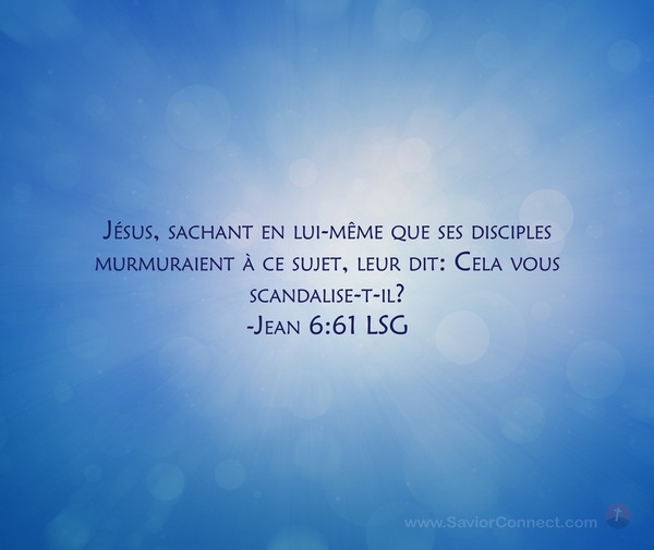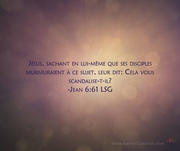 Jésus, sachant en lui-même que ses disciples murmuraient à ce sujet, leur dit: Cela vous scandalise-t-il? -Jean 6:61 LSG