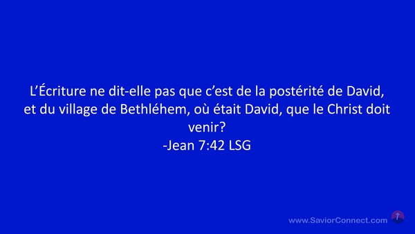 L'Écriture ne dit-elle pas que c'est de la postérité de David, et du village de Bethléhem, où était David, que le Christ doit venir? -Jean 7:42 LSG