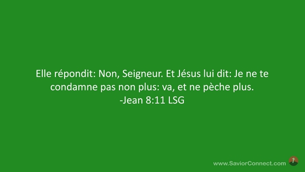 Elle répondit: Non, Seigneur. Et Jésus lui dit: Je ne te condamne pas non plus: va, et ne pèche plus. -Jean 8:11 LSG