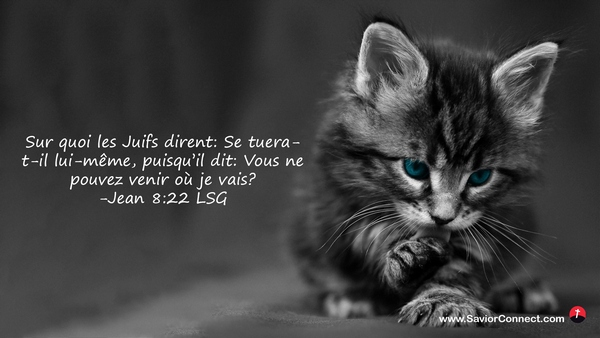 Sur quoi les Juifs dirent: Se tuera-t-il lui-même, puisqu'il dit: Vous ne pouvez venir où je vais? -Jean 8:22 LSG