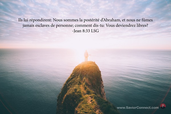 Ils lui répondirent: Nous sommes la postérité d'Abraham, et nous ne fûmes jamais esclaves de personne; comment dis-tu: Vous deviendrez libres? -Jean 8:33 LSG