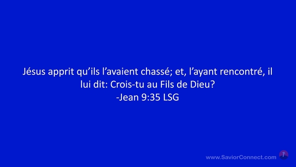 Jésus apprit qu'ils l'avaient chassé; et, l'ayant rencontré, il lui dit: Crois-tu au Fils de Dieu? -Jean 9:35 LSG