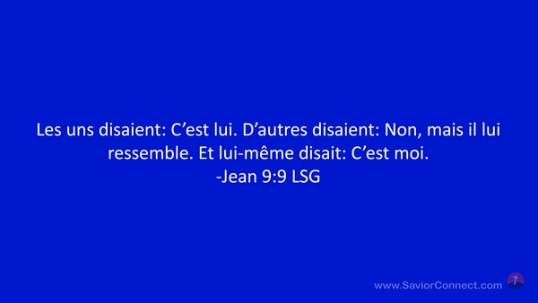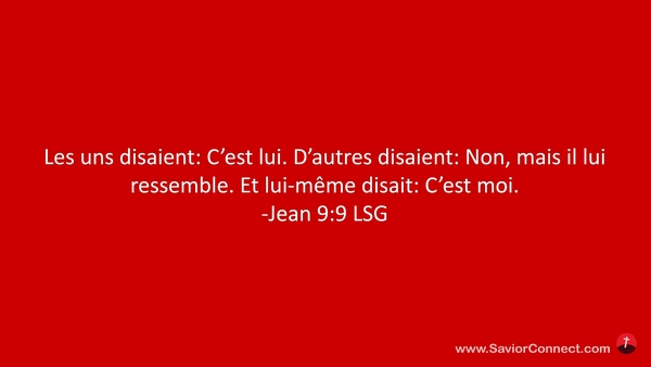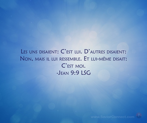 Les uns disaient: C'est lui. D'autres disaient: Non, mais il lui ressemble. Et lui-même disait: C'est moi. -Jean 9:9 LSG