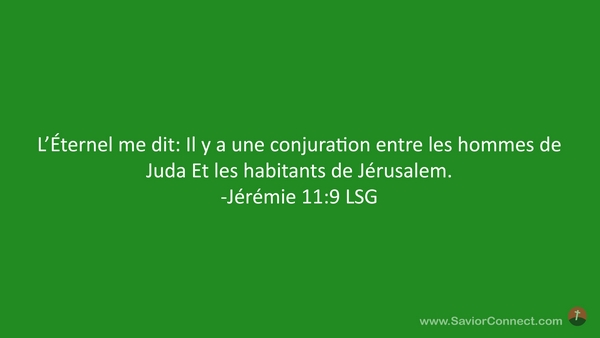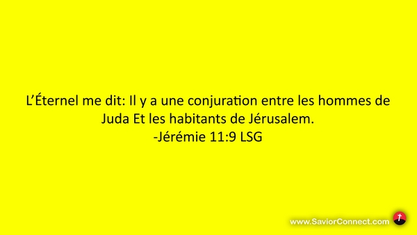 L'Éternel me dit: Il y a une conjuration entre les hommes de Juda Et les habitants de Jérusalem. -Jérémie 11:9 LSG