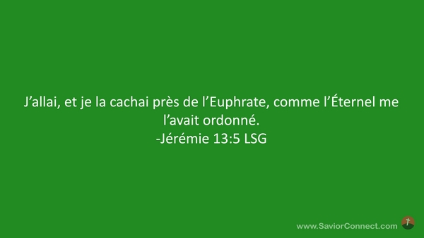 J'allai, et je la cachai près de l'Euphrate, comme l'Éternel me l'avait ordonné. -Jérémie 13:5 LSG