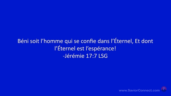 Béni soit l'homme qui se confie dans l'Éternel, Et dont l'Éternel est l'espérance! -Jérémie 17:7 LSG